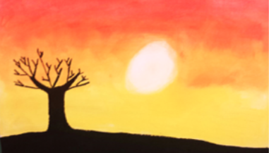 Today is Friday, and the first day of autumn. The Fall is one of my favorite seasons. Not only do you get to wear cute clothes like boots and sweaters, but the colors everywhere are AMAZING! Since I've been trying to find inspiration in different places, after going for a walk this week I decided I wanted my 6th graders to do something inspired by the change of colors and the escape felt when I'm outside, somewhere far removed from the hustle and noise of life. What better way to see that than through a beautiful landscape. This is why I had my 6th graders used chalk pastels to create silhouetted skies.