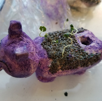 The beginning of this week was miserable and rainy but Memorial day weekend here in PA looks like it's going to be bright and sunny and suddenly summer. Thankfully this large dose of sunshine has helped our little Chia pets start spouting.
